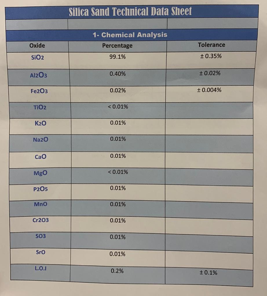 Good and Better has access to excellent quality silica sand from the middle east, making our products highly competitive in price with superior quality. Boasting over 98% purity and a price less than competitors. Please review out data-sheet sample for more detailed information.